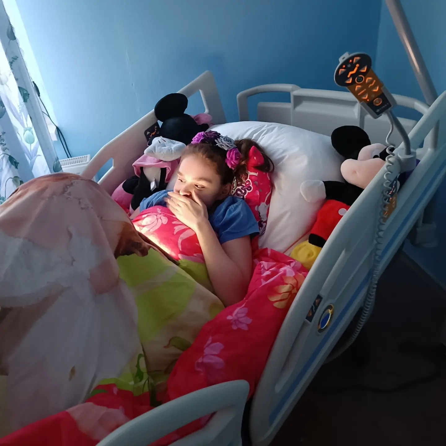 Lenička trpí těžkou mentální retardací, nemluví a je zcela upoutaná na lůžko. Kvůli silné skolióze, která jí utlačuje vnitřní orgány, je krmena sondou přímo do žaludku.