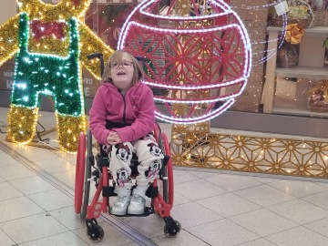 We have been doing everything we can since she was little. Míša has been practicing the Vojta method for a long time and thanks to enormous diligence and daily effort, she can now move on all fours. Unfortunately, she cannot walk independently. Most of the time, she is dependent on a wheelchair and our constant help.