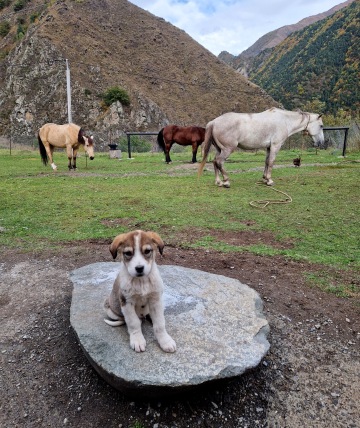V září 2024 jsem přijela poprvé do Gruzie na 2 týdny s plánem pomoci s přeháněním koní z hor na zimní stanoviště. Současně jsem byla požádana, zda bych zde - vzhledem ke své profesi - nevykastrovala 2 feny, aby se zde stále nerodila štěňata, která často nepřežijí.