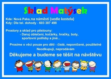 Dobrý den, už přibližně šest let vedu pěstounský sklad, který pomáhá rodinám v našem okolí. Jedná se o prostor, kde se zdarma nebo za minimální poplatek mohou pěstouni nebo samoživitelé v hmotné nouzi vybrat věci, které aktuálně k péči o svěřené dítě potřebují. Věci do skladu darují zdarma rodiče, kteří je již pro své děti nepotřebují.