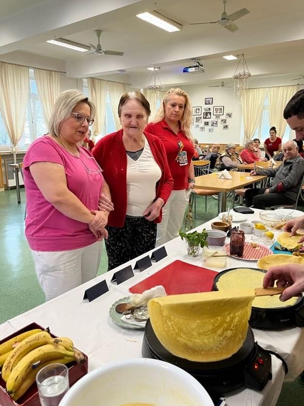 28. 11. 2022 proběhla v našem domově 90minutová zážitková beseda s názvem „Kouzelná Bretaň plná chutí“. V první části se účastníci seznámili se sedmi inspirativními místy regionu. Ve druhé části se pak mohli zúčastnit kulinářské dílny pod vedením zkušeného francouzského kuchaře, během níž se dozvěděli, jak se vyrábějí nejtenčí palačinky na světě, a taky že Francouzi si palačinky dávají s oblibou na snídani se zavařeninou, nutellou, ovocem nebo jen zalité javorovým sirupem. A i naši klienti si mohli tuhle dobrotu ochutnat díky kuchaři Françoisa, který nejen zajímavě vyprávěl, ale i palačinky neúnavně vyráběl, tak aby se dostalo opravdu na každého.