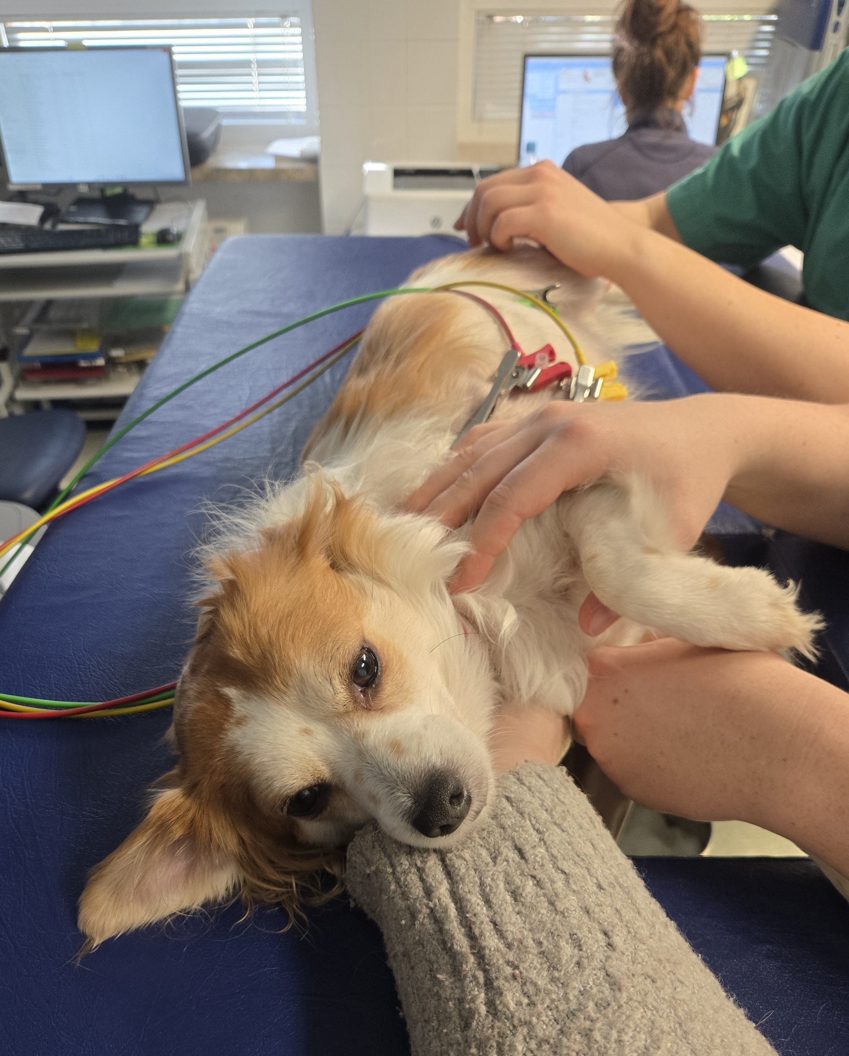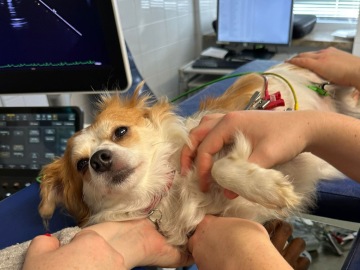 14. 12. 2025Potato během měsíce podstoupila už třetí sono srdce, při vyšetření vždy leží v klidu, ale vidím její strach v očích. Je důležité, aby ji doktoři sledovali, protože se během roku její stav velmi rychle zhoršil, před rokem ji dělali vyšetření srdce kvůli malému šelestu, ale odchylky byly tak nepatrné, že nedomykavost chlopně vyšetřující doktor neodhalil. Během roku se ale srdeční komora radikálně zvětšila, stejně jako její tepna vedoucí ze srdce do plic, což může časem způsobit plicní edém (nahromadění tekutiny v plicích a následné problémy s dýcháním). Současná medikace, kterou Potato bere 2xdenně, její zdravotní stav udržuje ve stabilním stavu, aby se závažným problémům prozatím předešlo.