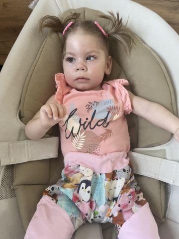Vzhledem k tomu, že je velmi hypotonická (neudrží hlavičku, neumí sedět), potřebuje kvalitní kočárek, který jí zajistí pohodlí a komfortní sed.