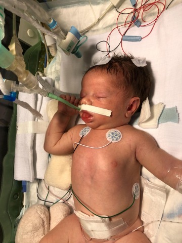 Hned po porodu byl převezen do Prahy na JIP, kde bojoval o život. Když byl po 14ti dnech odpojen od plicní a oběhové podpory, mohli jsme si ho konečně pochovat. Ta radost byla neskutečná, vidět ho konečně bez všech těch hadiček a moc ho držet v náručí. V tu chvíli jsme si mysleli, že máme nejhorší za sebou a že už bude vše v pořádku. Adámek ztratil sací reflex a proto byl ze začátku krmen sondou do žaludku. Několikrát denně jsme prováděli orofaciální masáže, díky kterým se postupně naučil pít mlíčko z lahvičky sám.