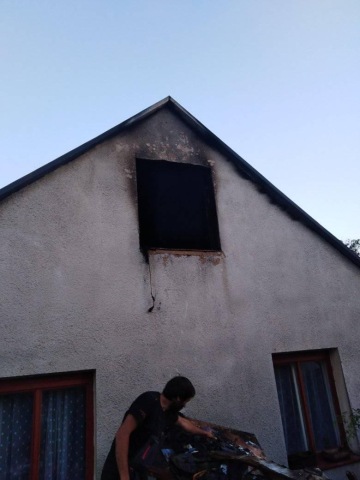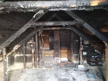 Požárem byla zcela zasažena obytná místnost v podkrovívčetně vnitřního vybavení. Postele, nábytek, oděvy, počítač, televize… všeje nevratně pryč. Zasažena byla trámová konstrukce střechy včetně pobití,dvoukřídlové okno, vstupní dveře, vnitřní rozvody elektroinstalace a topení.Zplodinami topení a sálavým teplem došlo k poškození dalších podkrovníchmístností. Příčinu požáru hasiči označili jako závadu na dětské chůvičce.