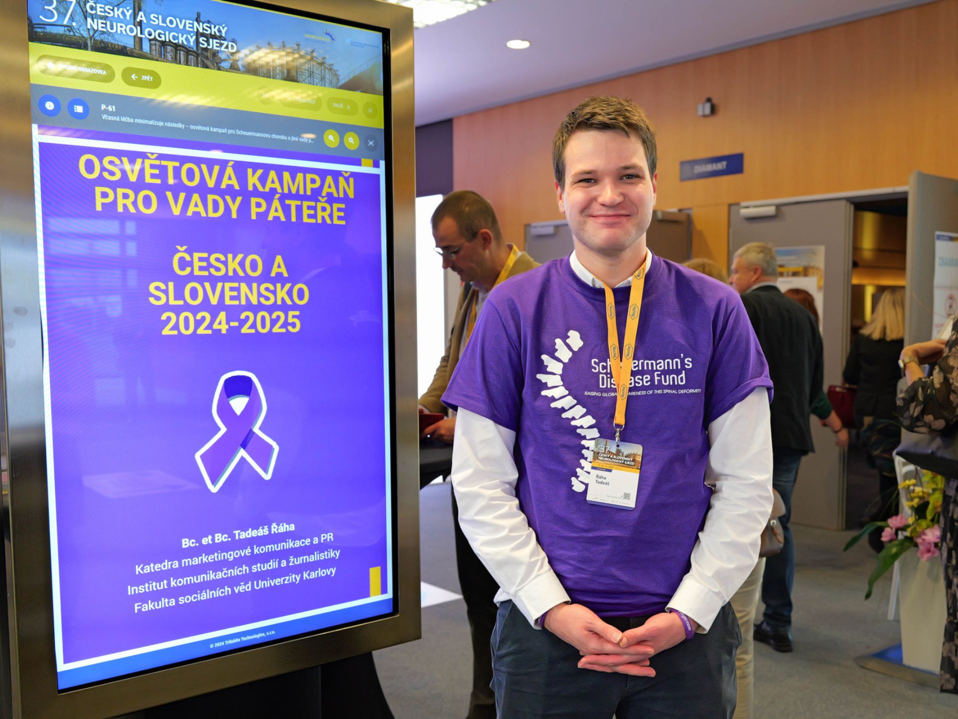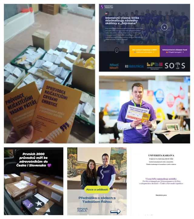 Rozhodl jsem se využít svého vzdělání na Katedře marketingové komunikace a public relations na Institutu komunikačních studií a žurnalistiky Fakulty sociálních věd Univerzity Karlovy. Za podpory univerzity, nadace Scheuermann's Disease Fund a nespočtu skvělých dobrovolníků jsme spustili osvětovou kampaň pro včasný záchyt a léčbu vad páteře. Zaměřenou na zdravotníky i širokou veřejnost.