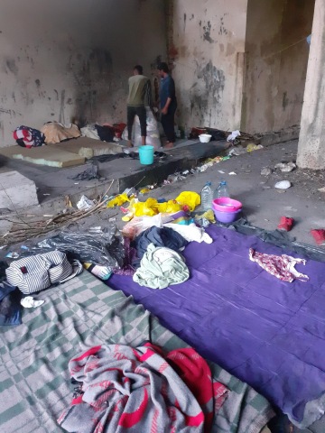 Dovezené oblečení ze sbírky jsme rozdělili mezi uprchlíky, pro které není zřízen oficialni tábor a přebývají venku bez jakékoliv pomoci..